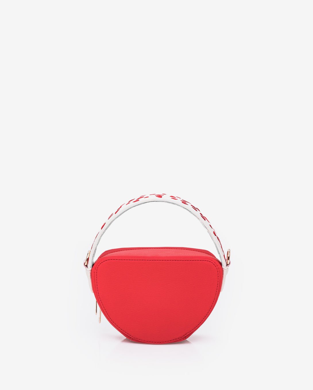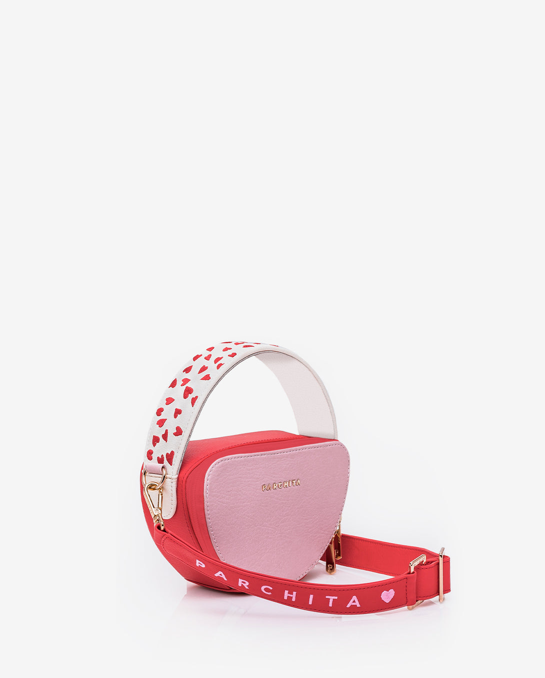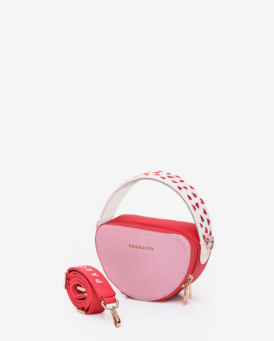Limited-edition Petit Love and Friendship Wallet. Its circular, structured PVC design with contrasting colors creates a romantic and feminine bag. It's complemented by embroidered hearts on the handle. Made with fine gold hardware and an illustrated typhoon, it's ideal for carrying your essentials. The interchangeable strap allows it to be worn on the shoulder or across the body, adding versatility and style to any look.