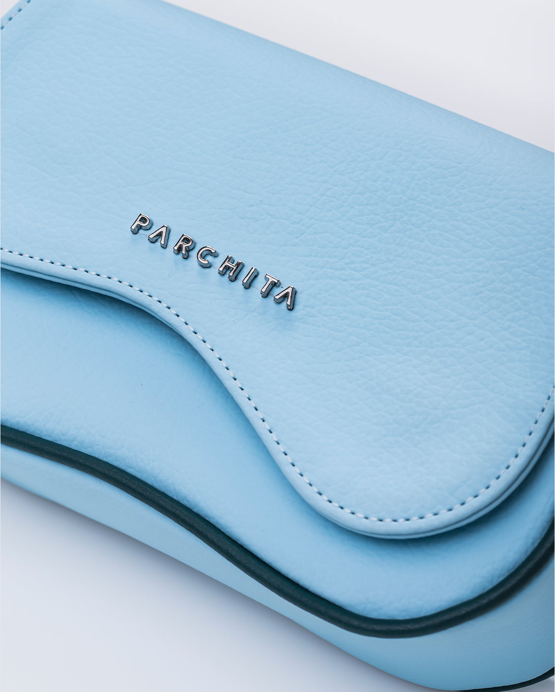 Diseñada para acompañarte en tus días más ligeros, esta mini cartera en PVC combina funcionalidad y estilo en un formato compacto. Su silueta curva y fluida, inspirada en el movimiento de las olas, aporta un toque moderno y femenino. El cuerpo en tono azul claro contrasta con detalles en verde oscuro, creando una combinación fresca y sofisticada. Incluye un cierre interno Y broches imantados que aseguran tus esenciales, mientras que su correa ajustable y removible la hacen una cartera versátil, ideal para días ligeros. Cartera para mujer en PVC con broche en imán bolsillo interno cargadera ajustable.