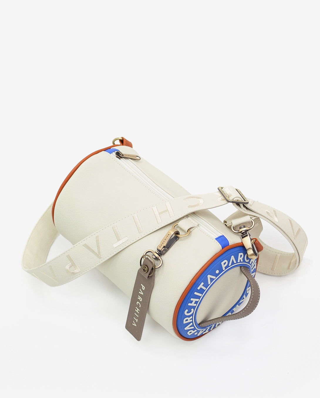Its cylindrical shape is bold and modern. Perfect for the office, a weekend getaway, or a special night out. Its spacious design allows you to carry all your essentials with you in style.