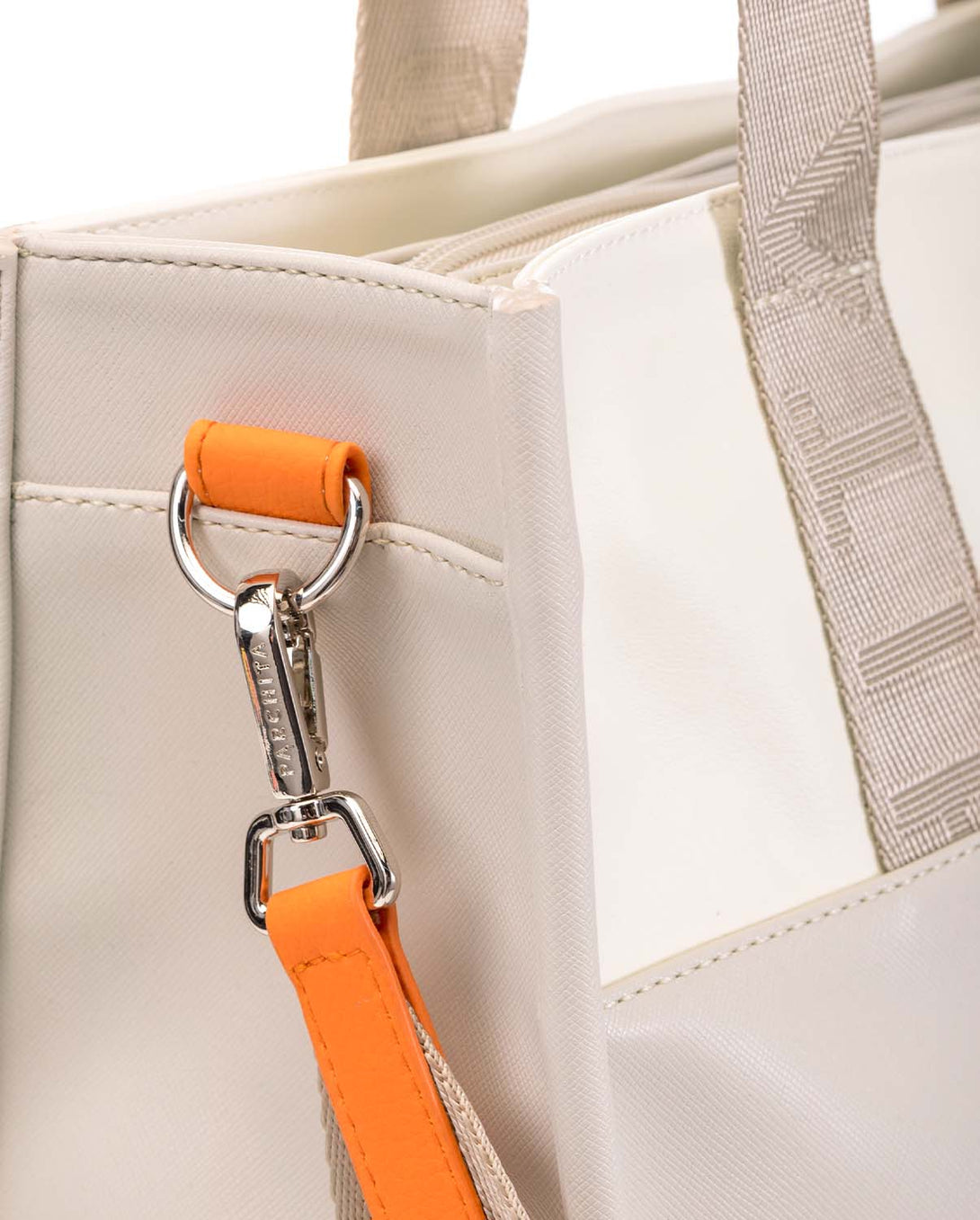 Large taupe PVC women's bag with internal pockets