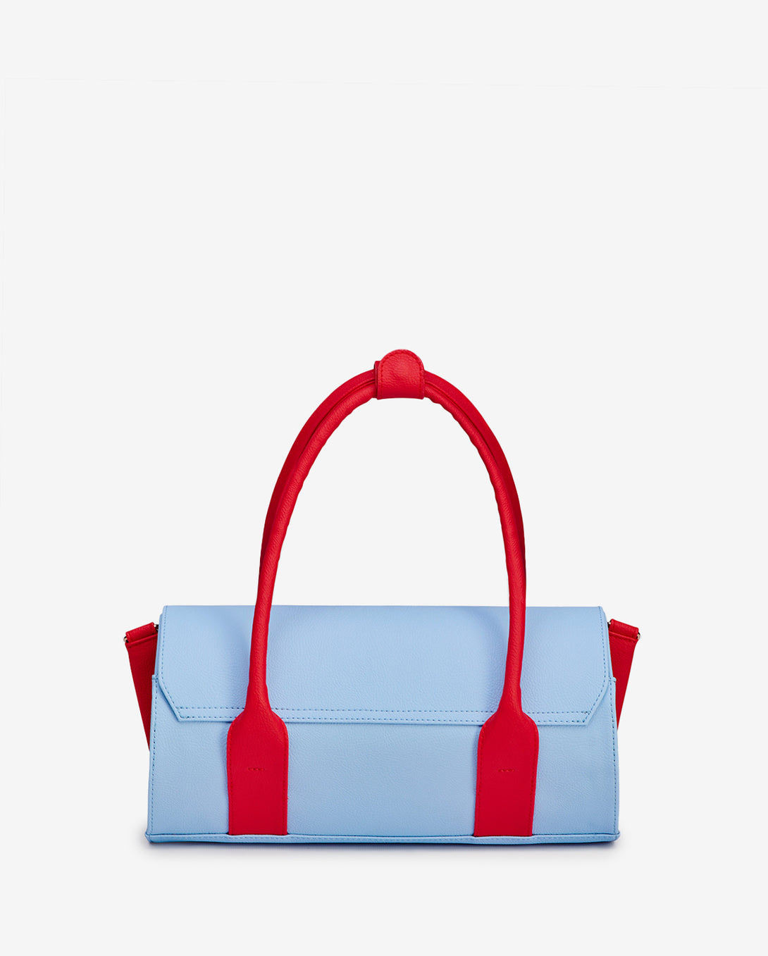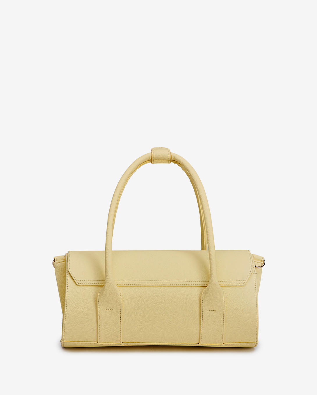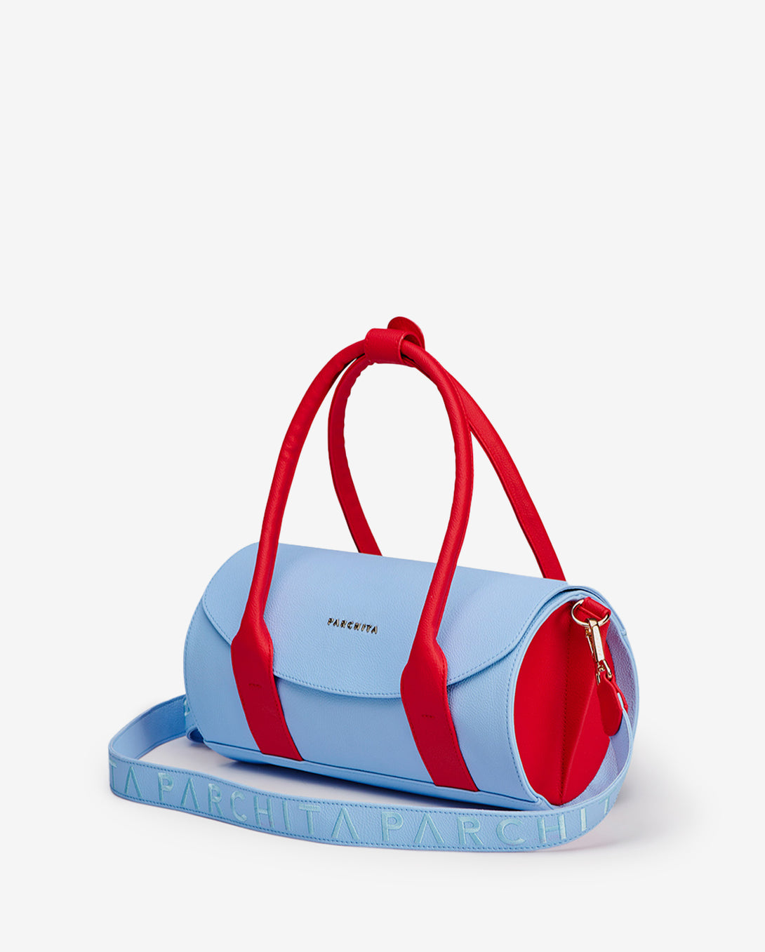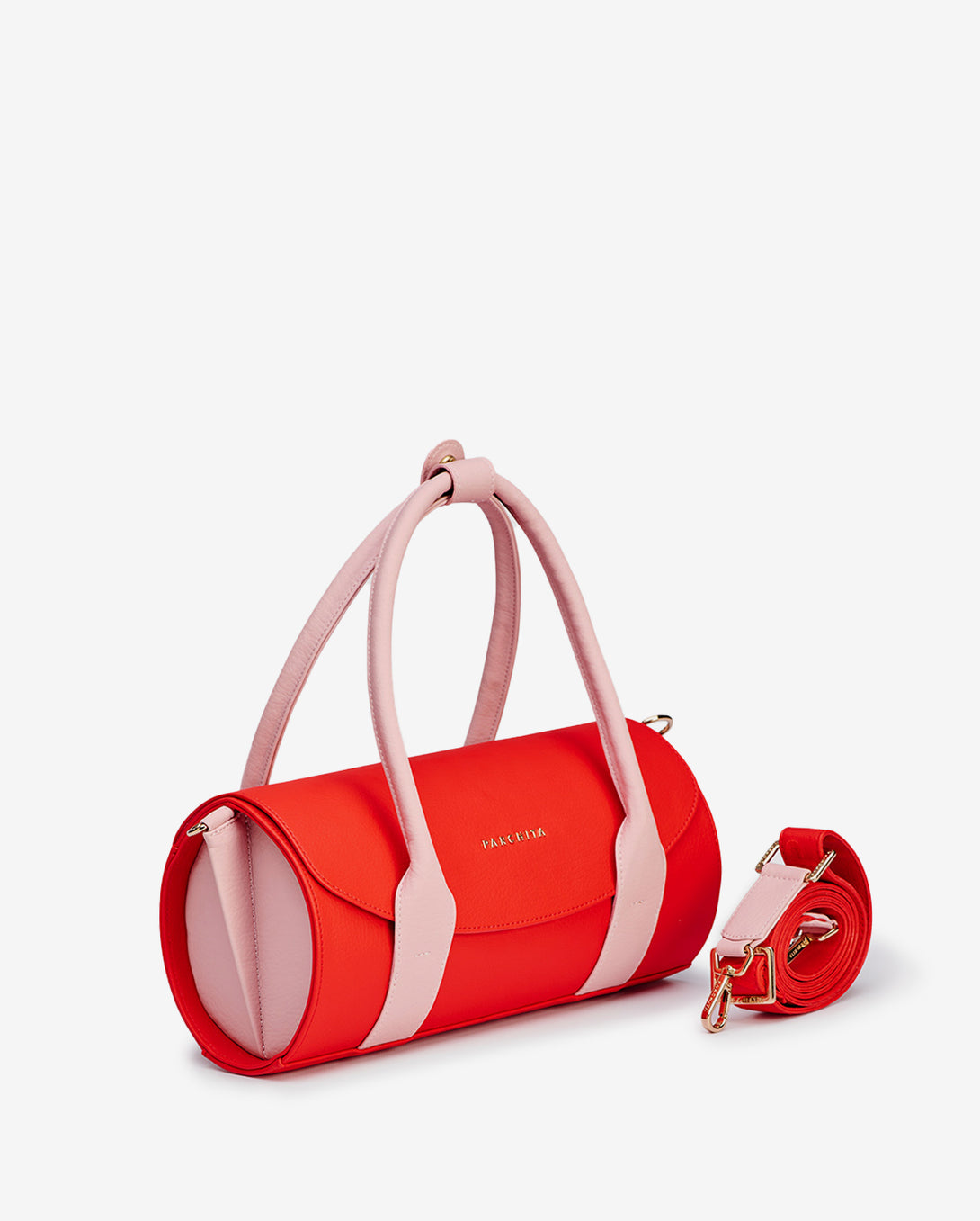 This cylindrical bag is the perfect balance of shape and style. It features double structured handles for hand carrying, a clasp, and an interchangeable strap for added versatility. It also features an internal zippered pocket with magnets for opening and closing. It's a striking piece and ideal for those looking for a practical bag with personality that easily adapts to different looks and moments of the day. Available in three colors.