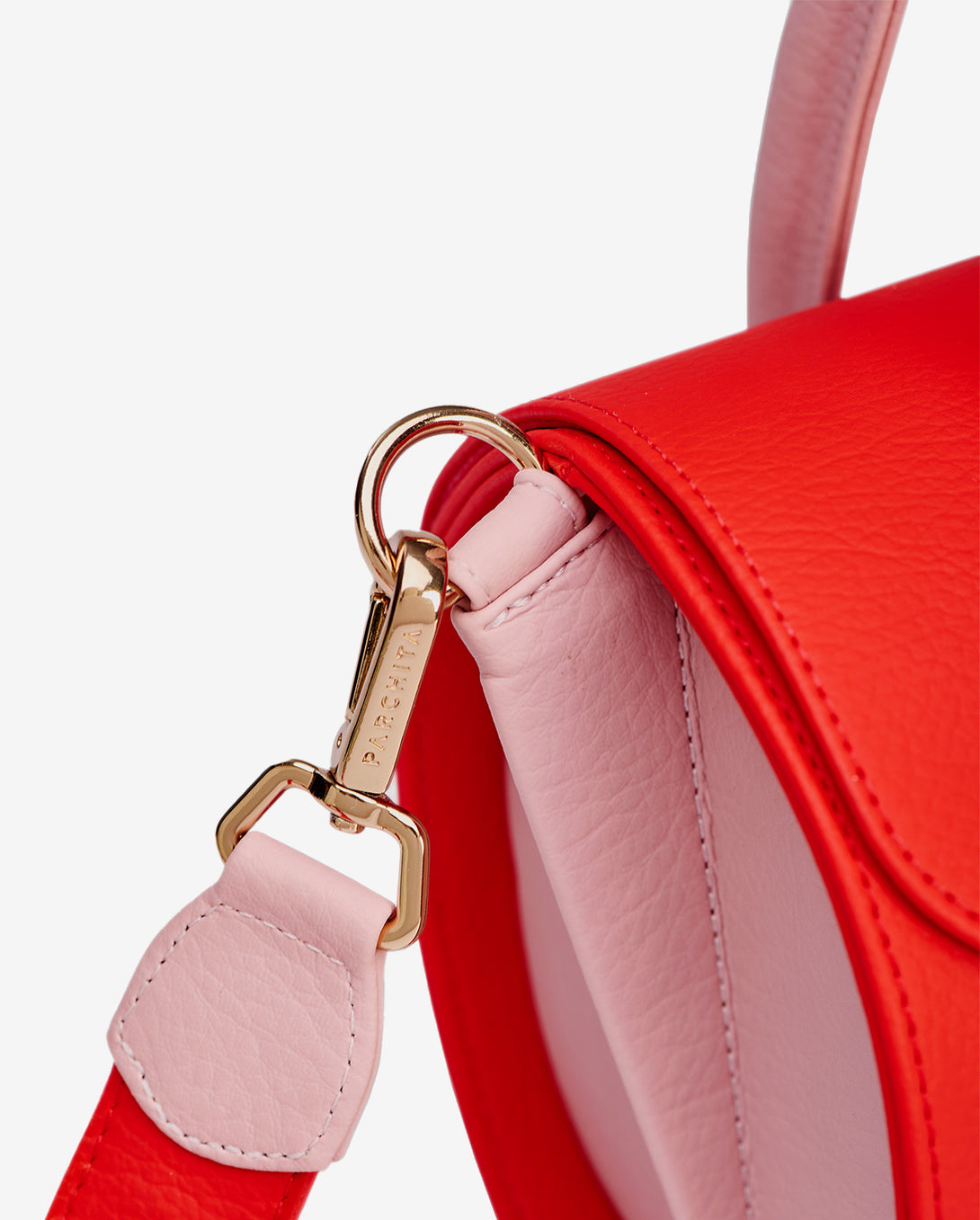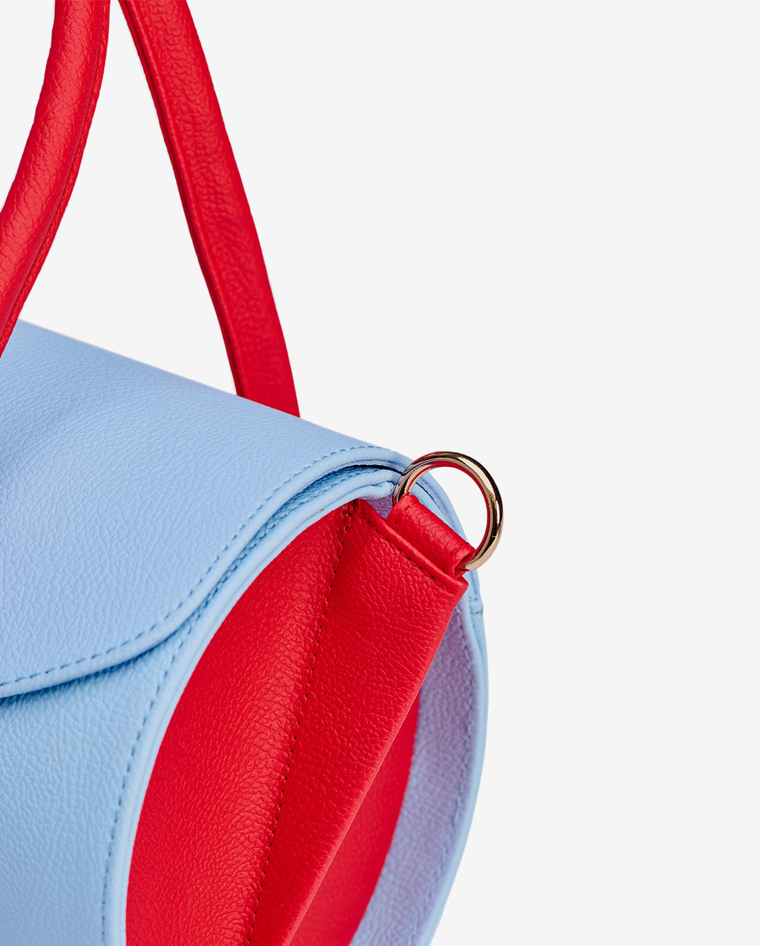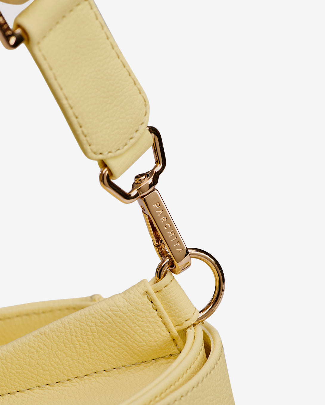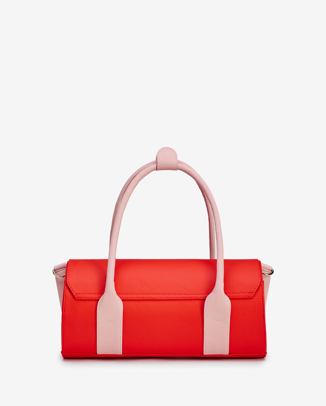 This cylindrical bag is the perfect balance of shape and style. It features double structured handles for hand carrying, a clasp, and an interchangeable strap for added versatility. It also features an internal zippered pocket with magnets for opening and closing. It's a striking piece and ideal for those looking for a practical bag with personality that easily adapts to different looks and moments of the day. Available in three colors.