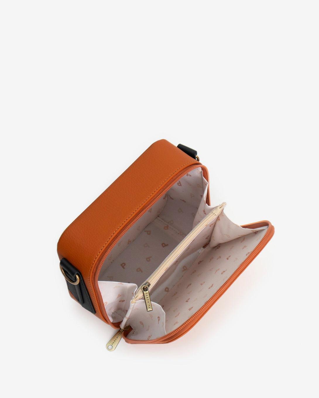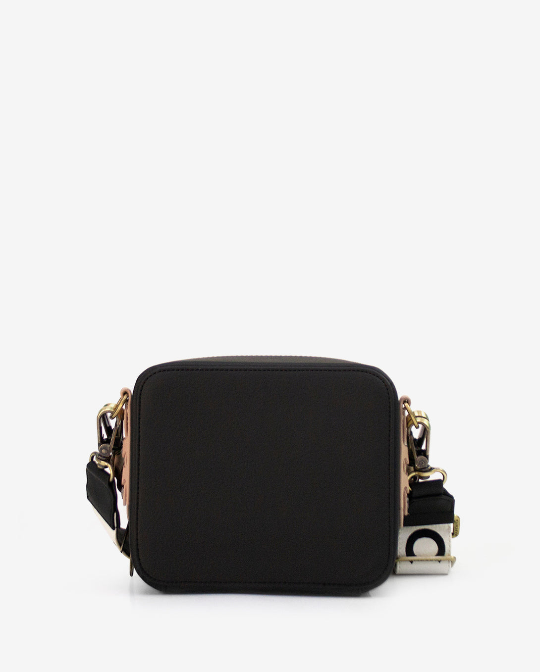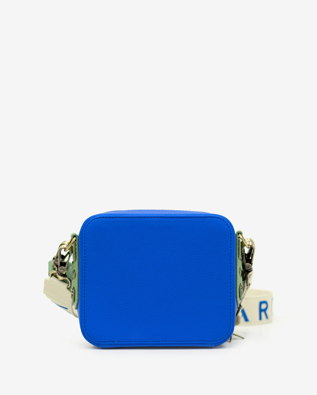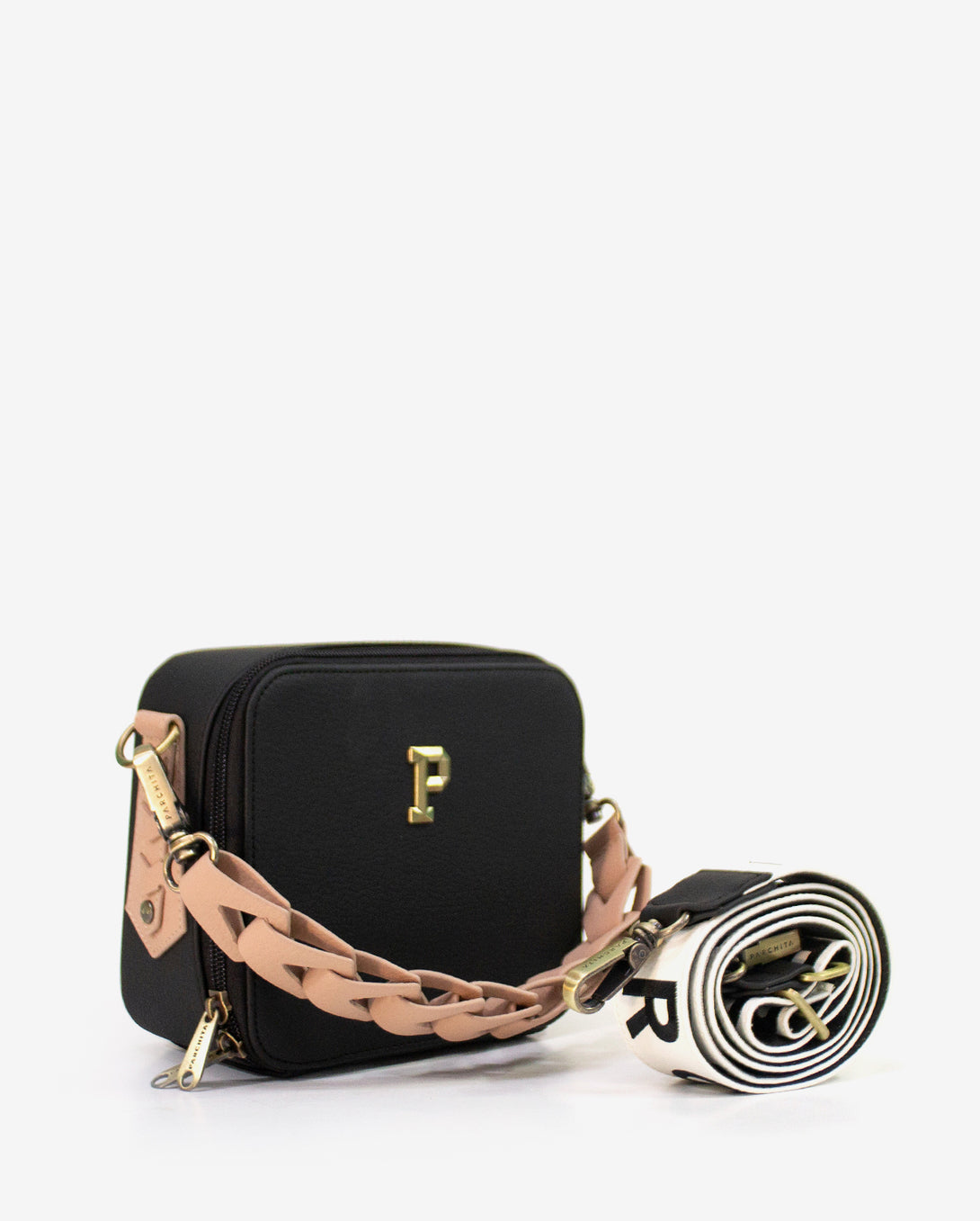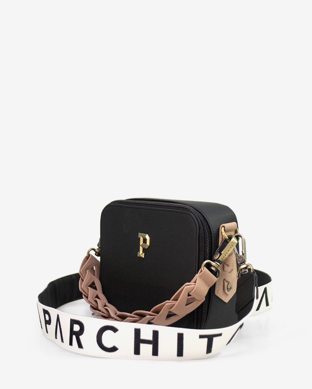 Small structured PVC wallet for women in a variety of colors with a chain handle and adjustable strap.